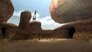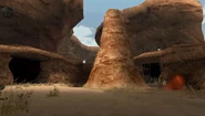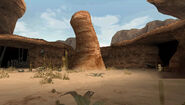 Cette arène est constituée d'une unique petite zone dans un désert sans qu'une boisson fraîche soit nécessaire pour s'y aventurer sans danger. La zone est enclavée de roches, une petite construction en bois est présente au sud de la zone. Elle est surplombée par un drapeau avec l'emblème de la Guilde. Trois entrées sont présentes avec des pieux en bois dirigés vers la zone à l'entrée. Ils empêchent les monstres entrant de s'échapper.
