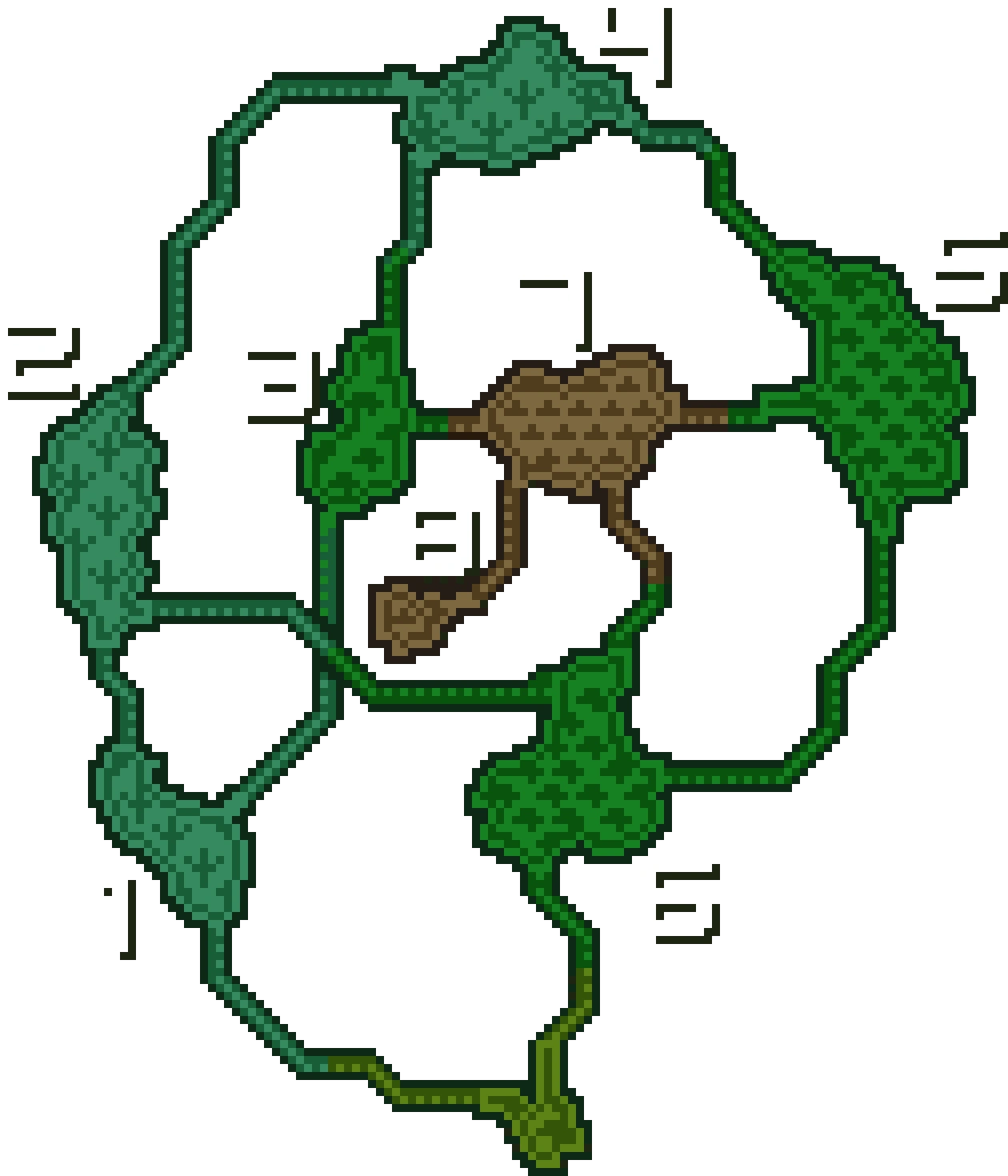 Les arbres ici ne sont plus tout jeune. Afin d'arriver à cet arbre géant, il faut errer dans un labyrinthe de troncs. Ses racines au-dessus forment une canopée. Plus l'on s'enfonce dans la grande forêt, plus elle s'assombrit du à l'épaisseur croissante du feuillage.
