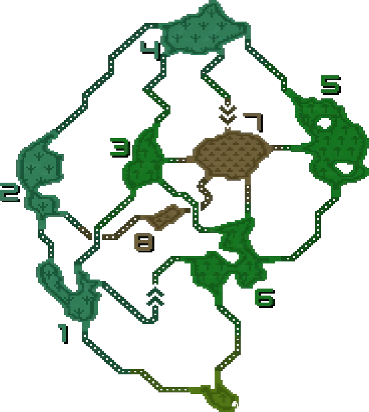 Celle de la grande forêt représente le sommet de la zone 7 qui est accessible de façon aléatoire en haut rang et en rang G des quêtes de guilde. Cette zone a été modifiée dans Monster Hunter Frontier afin d'en faire une arène : le sommet de la grande forêt.