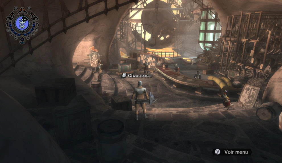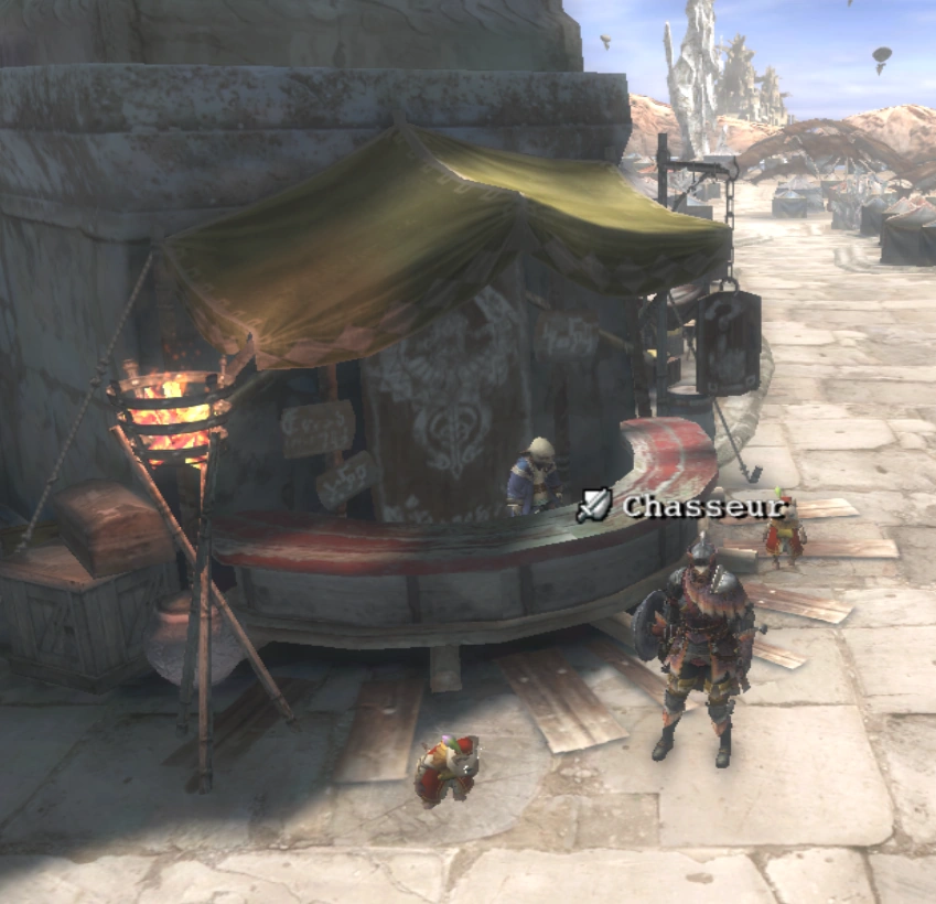 Géré par le maître forgeron, il pourra forger armes, armures et décorations pour les chasseurs. L'employé de l'armurerie situé à sa gauche permettra d'acheter et de vendre de l'équipement. Un coffre servant à gérer l'équipement sera disponible à côté du maître forgeron.