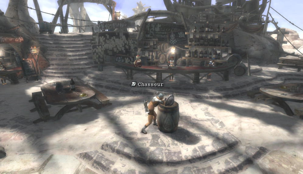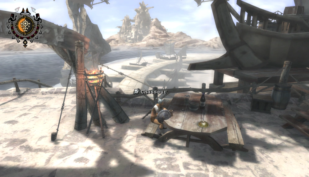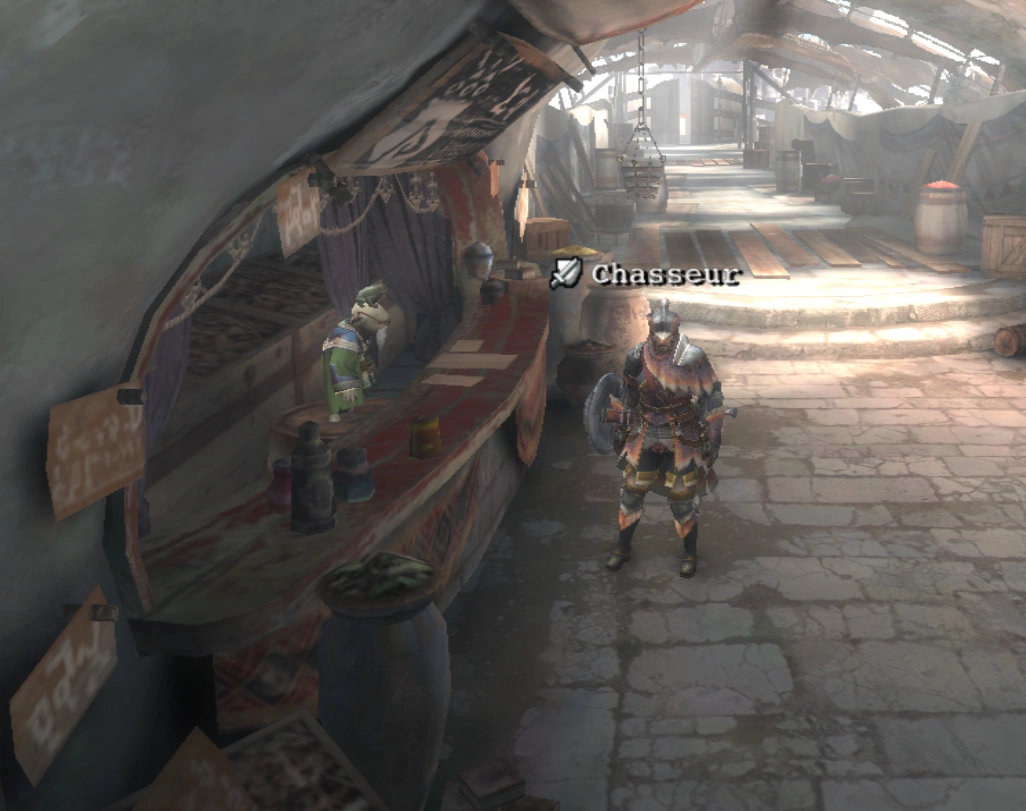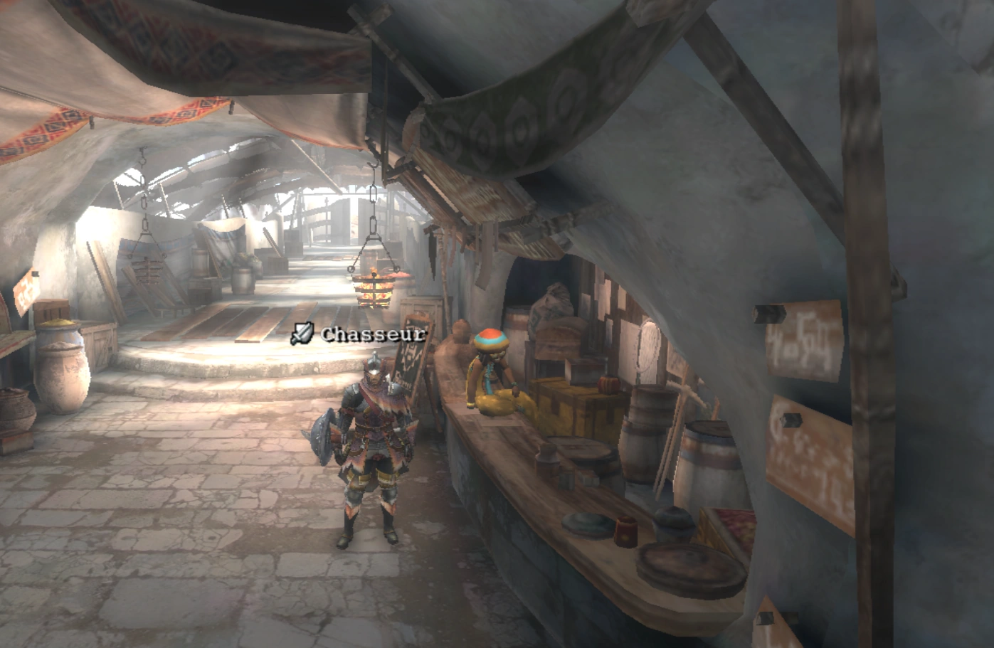 Sponsorisée par la Guilde, c'est ici que les chasseurs passeront le plus clair de leur temps. Ils pourront s'affronter au bras de fer, acheter des objets au magasin, manger à la cantine et choisir des quêtes via les deux réceptionnistes de Guilde présentes au bar. Le maître de Loc Lac est présent à leur droite.