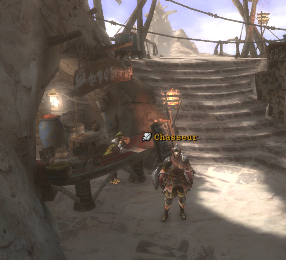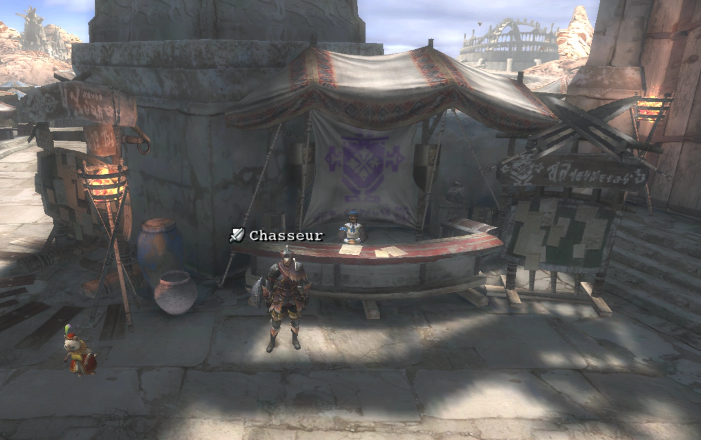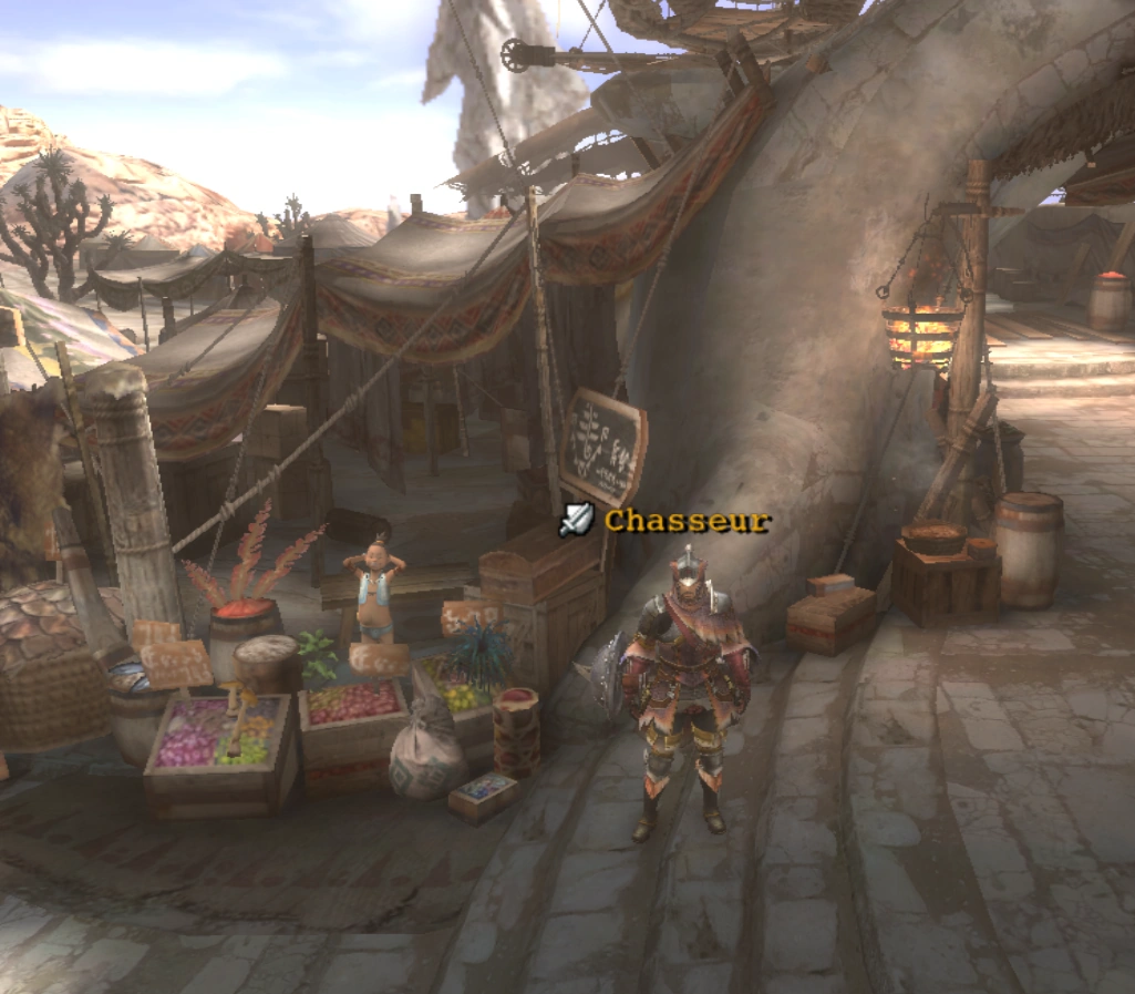 Construite en plein cœur du grand désert, le "Joyau du désert" est un lieu de rencontre renommé parmi les chasseurs. Beaucoup d'entre eux passent par ici lors d'expéditions vers des lieux exotiques à travers le monde.[1]