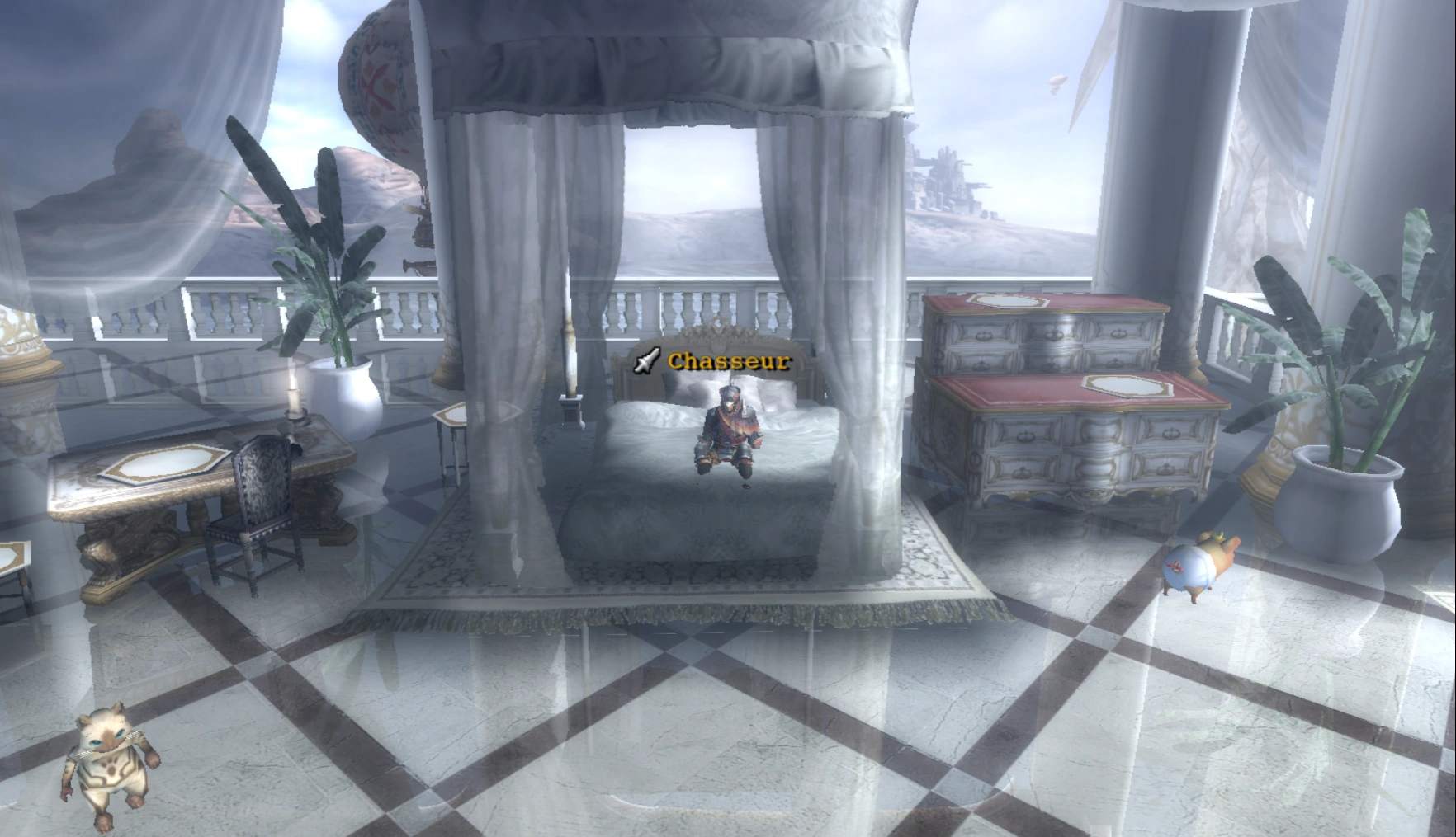Géré par le caîd des pensions, il permettra aux chasseurs de choisir leur pension. Gratuite mais dépendante du rang, ce sont les maisons servant à gérer l'équipement ainsi qu'à sauvegarder. Il est possible de parler au chambellan afin de rendre public ou privé la pension ainsi que déposer divers meubles. La pension 1 se trouve à gauche, la pension 2 à droite et la pension 3 au centre.