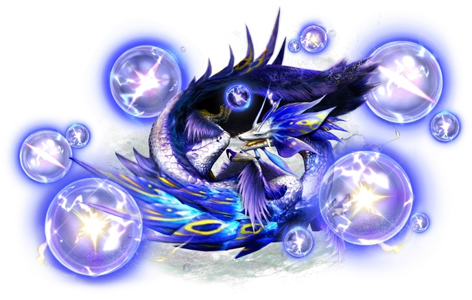 Le Mizutsune bulle de tonnerre est un leviathan apparu pour la première fois dans Monster Hunter Explore. C'est une espèce festive du Mizutsune.