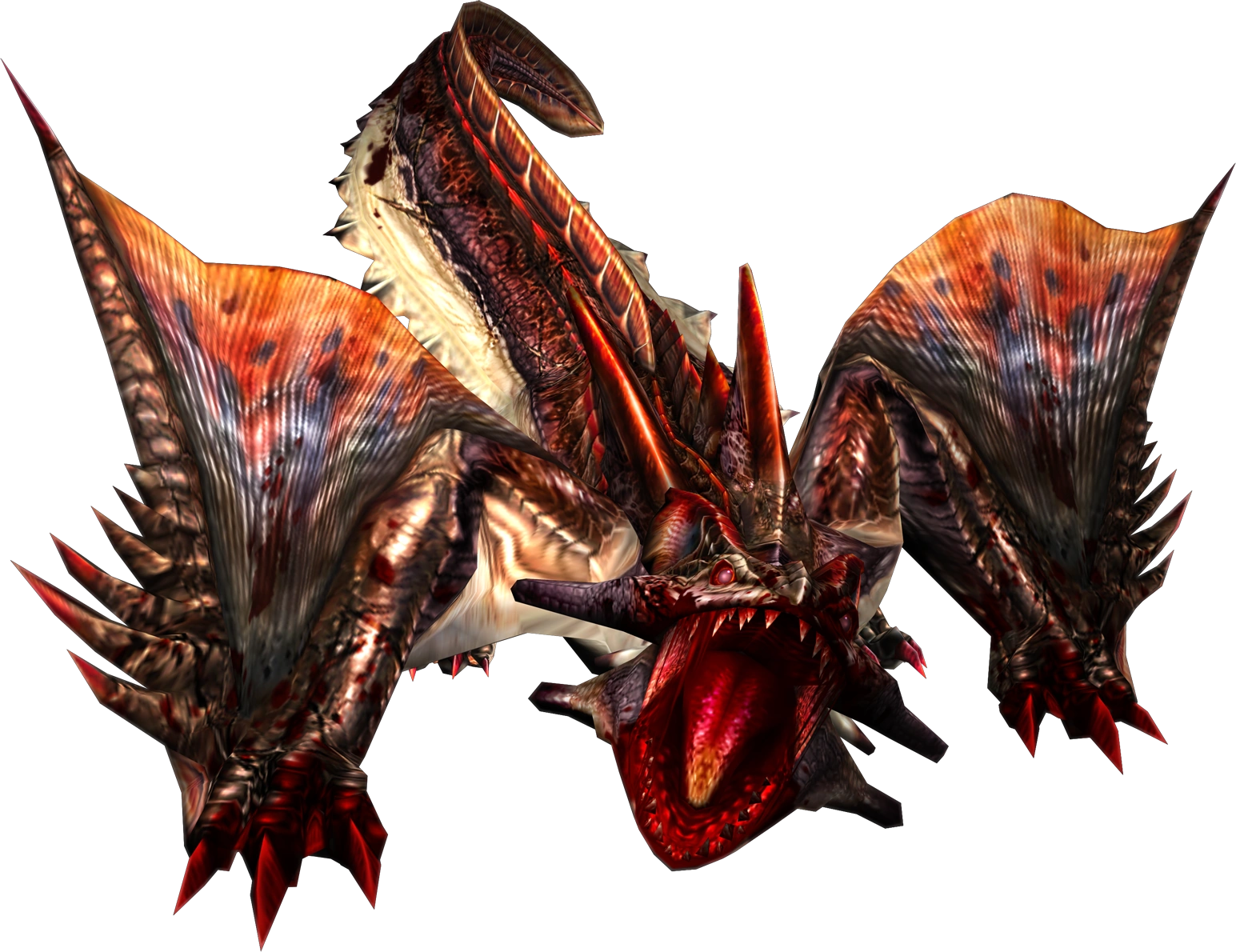 Son changement d'apparence est flagrant mais on notera surtout les cicatrices le long de son corps, sa gueule et ses griffes recouvertes de sang, plusieurs tâches sanguines sur tout son corps, plusieurs teintes de violet à divers endroits, un rouge plus foncé sur les ailes et des yeux rouge pâle qui laissent une traînée semblable à celle d'un Nargacuga.