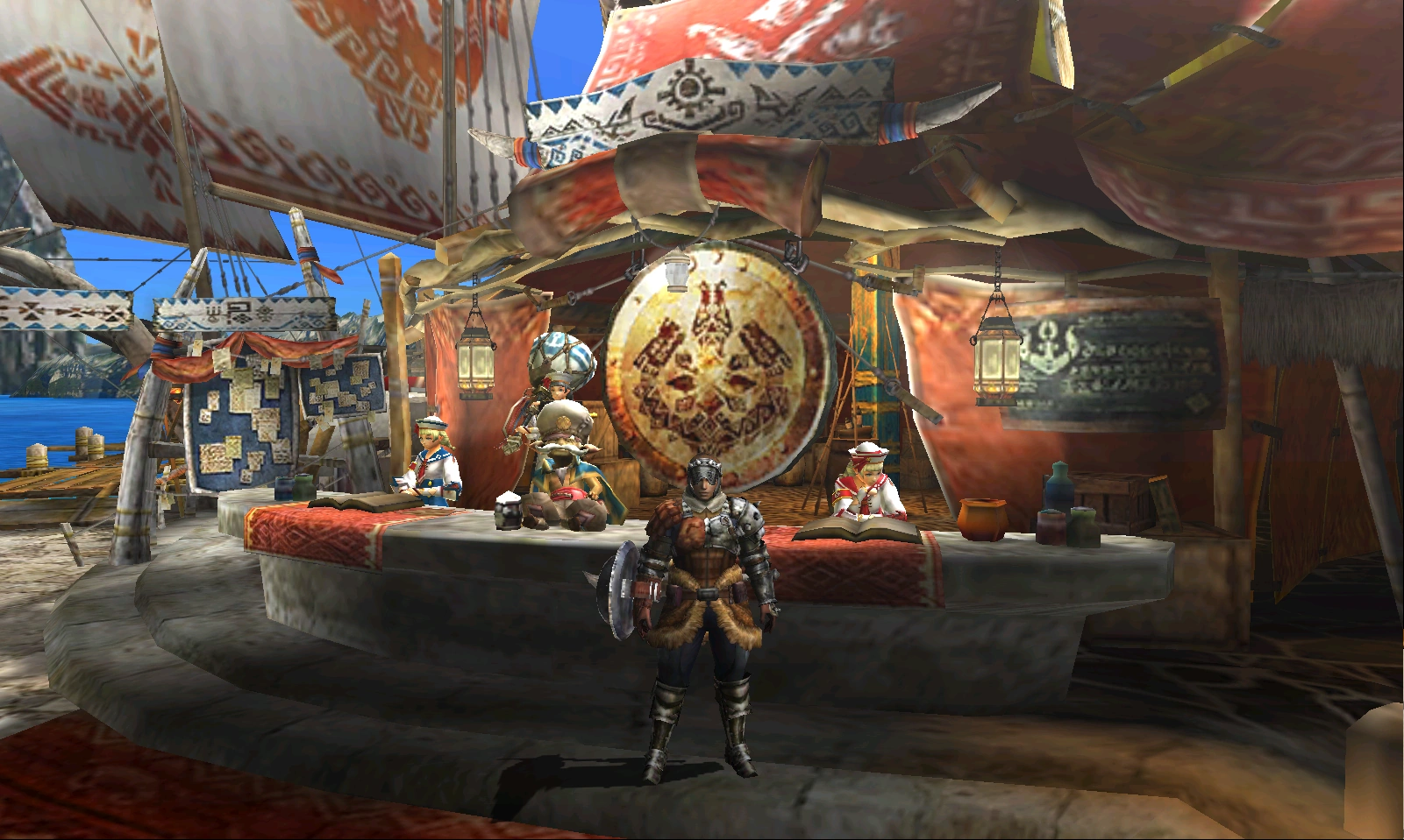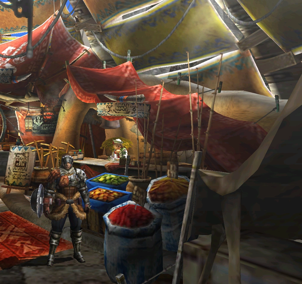 Magasin générale de la Guilde où il est possible de trouver divers objets utiles aux chasseurs comme des tomes de combinaison, des charmes, des potions, des livres de bestiaire, des munitions, etc Le nombre d'objets disponible en magasin augmentera au fur et à mesure des quêtes.