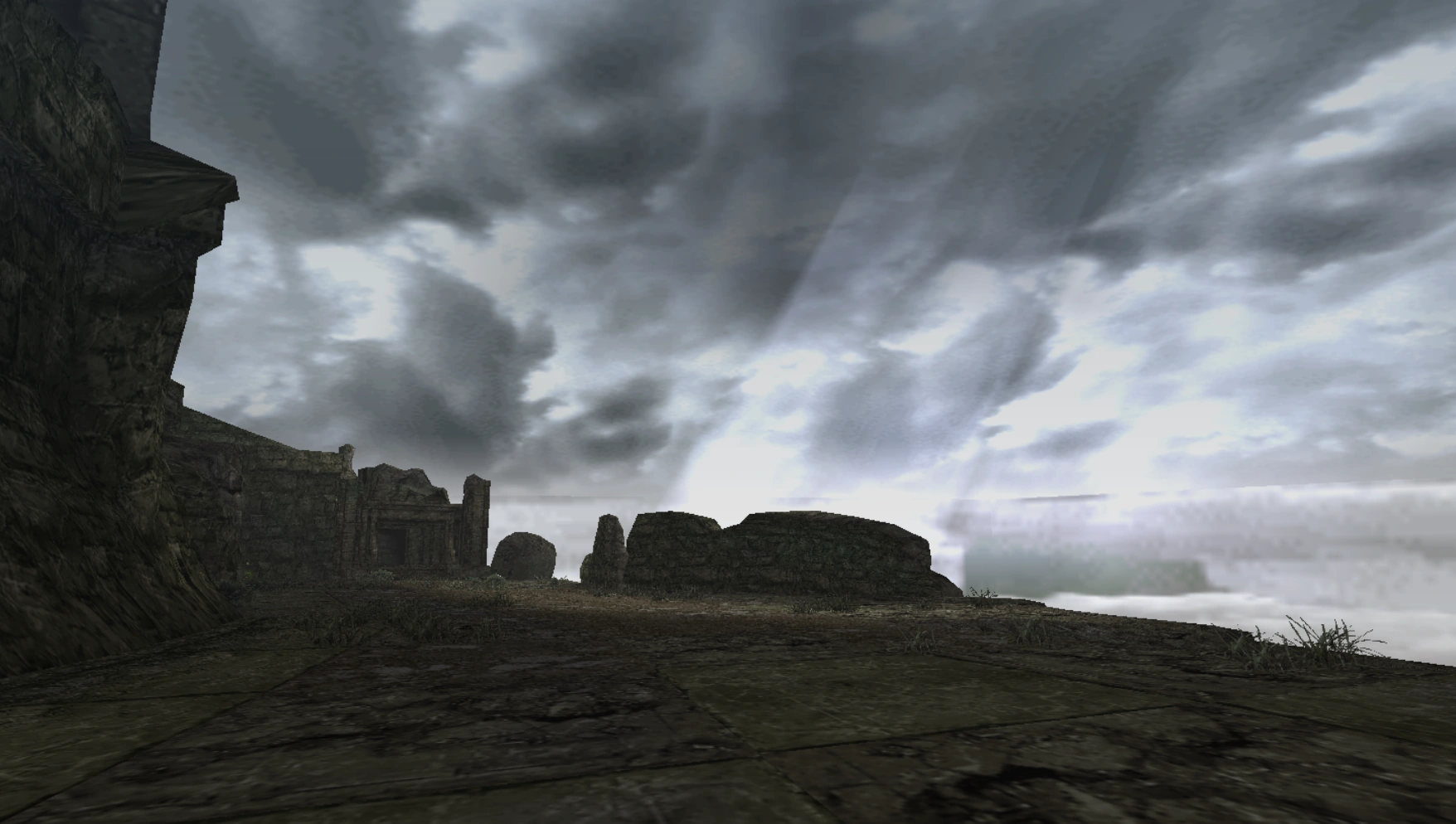 Zone sur 2 étages avec au dessus une surface en demi-cercle et en bas un sol où il est possible de rejoindre la zone 6. Baignée par des faisceaux luminaux perçants les couches de nuages.